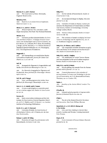 uct on a marine copper find. Studies in Conservation O'Keeffe, M.
