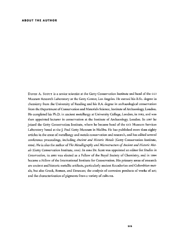 DAVID A. SCOTT is a senior scientist at the Getty Conservation Institute and head of the GCI