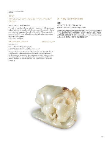 The jade is naturalistically carved with a standing buffalo grasping a 倫敦佳士得,2011年5月10日,拍品128號