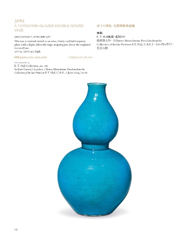 The vase is covered overall in an even, finely crackled turquoise 倫敦佳士得,《Chinese Monochrome Porcelain from the