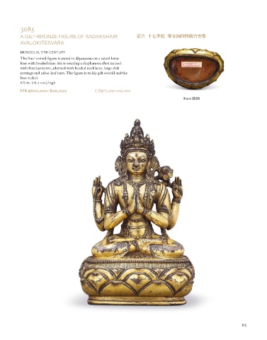 A GILT-BRONZE FIGURE OF SADAKSHARI 蒙古 十七世紀 鎏金銅四臂觀音坐像