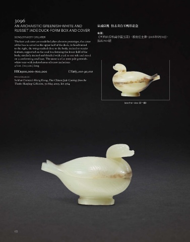 AN ARCHAISTIC GREENISH-WHITE AND 宋或以後 仿古青白玉鴨形蓋盒