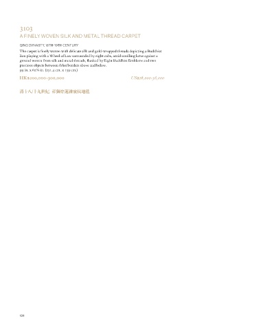 The carpet is finely woven with delicate silk and gold-wrapped threads depicting a Buddhist