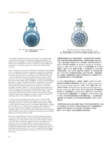 and white. Museum》,倫敦,2001年,頁110,圖3:21、上海博物館藏一例,見《青花