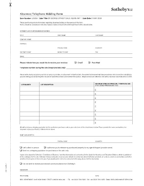 BIDS DEPARTMENT 34-35 NEW BOND STREET LONDON W1A 2AA I TEL +44 (0)20 7293 5283 FAX +44 (0)20 7293 6255 EMAIL BIDS.LONDON@SOTHEBYS.COM