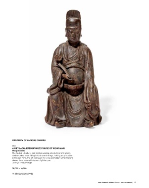 The God of Literature, cast seated wearing scholar’s hat and a long,