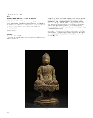 A PAINTED WHITE MARBLE FIGURE OF BUDDHA Stylistically, the present fgure closely relates to a larger (81.3 cm.) limestone