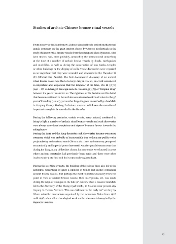 study of ancient ritual bronze vessels from the Shang and Zhou dynasties. This