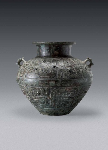 An archaic bronze wine or water vessel lei, cast in the Provenance: