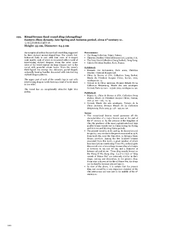 by three stylized animal-shaped legs. The vessel’s flat- ▪ The Wang Collection, Taipei, Taiwan.