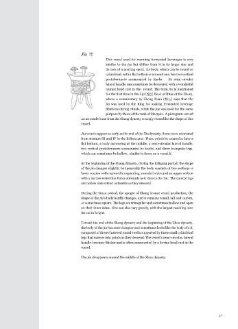 period of the early Shang dynasty, but no such early jia was used by the King for making fermented beverage