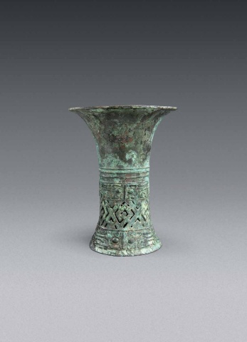 bands of decoration is cast in openwork with geometric ▪ Very few gu vessels of this type and with openwork