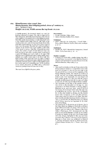 stylized and smaller taotie mask in its lower half. The ▪ A bronze jia vessel with a similar design, but with a