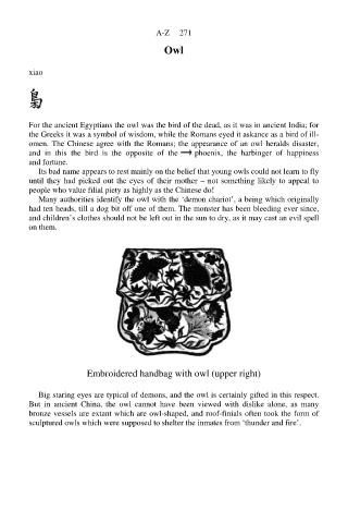 omen. The Chinese agree with the Romans; the appearance of an owl heralds disaster,
