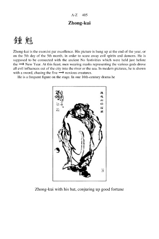 Zhong-kui is the exorcist par excellence. His picture is hung up at the end of the year, or