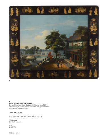 Oil on canvas; in a frame of lacquered wood with gilt decoration.