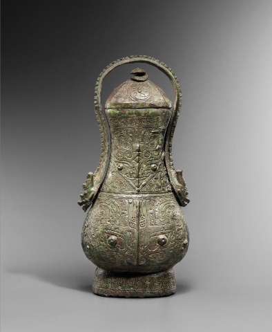 Archaic bronze wine container you with cover. The vessel’s pear-