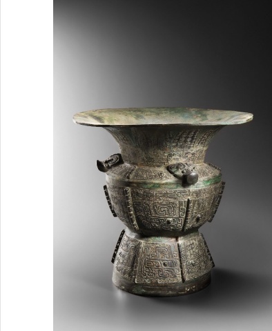 Rare archaic bronze wine vessel zun. The wide-shouldered vessel,