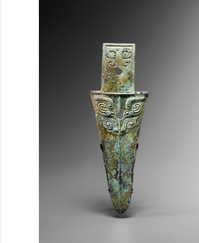 Bronze dagger-axe, its long triangular blade with a rounded tip per-