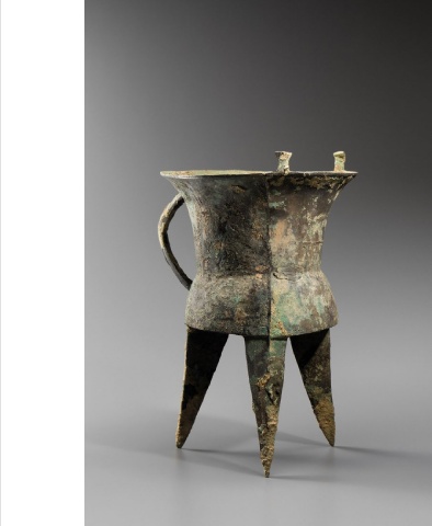 Ritual bronze tripod vessel jia used for warming fermented bever-