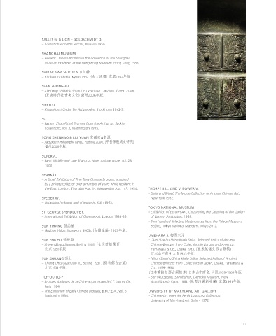 – Ritual Vessels of Bronze Age China, New York, Asia House 1968. of the Royal Ontario Museum, Toronto 1992. University of Maryland Art Gallery 1972.