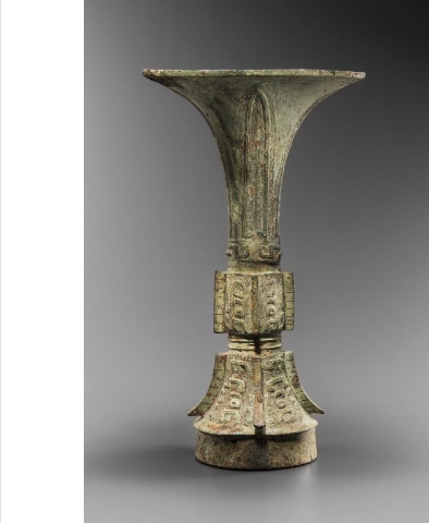 Archaic bronze wine vessel gu, with a high trumpet-shaped neck