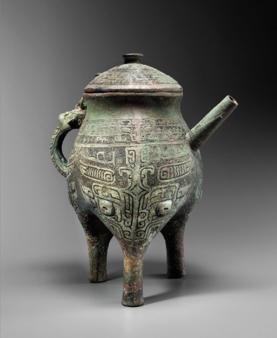 the vessel’s semi-circular handle decorated with its masterfully cast