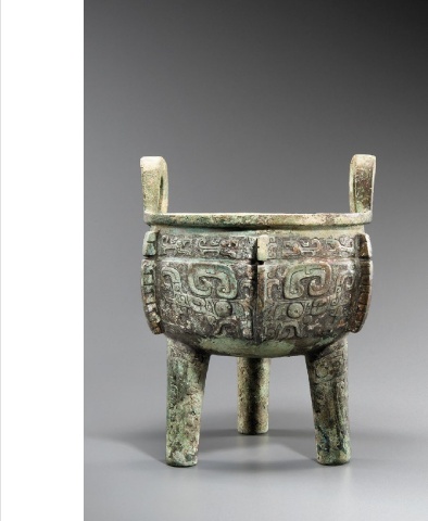 Archaic bronze vessel ding used for cooking. The round bowl-