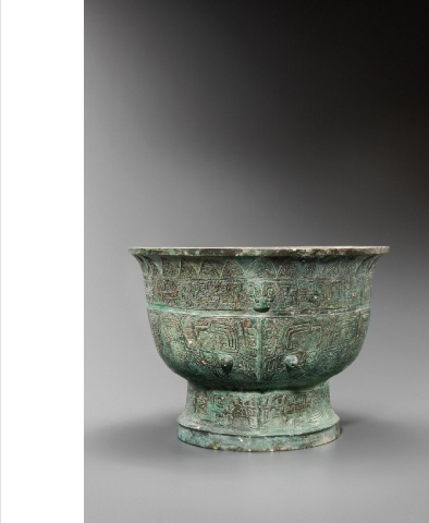 Archaic bronze ritual food vessel yu. The bowl-shaped body with