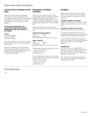 Please note that all oversized lots listed below Please note: For sold lots removed to Door To due to Door To Door Services must be paid by Paddle number (for office use only) Sale no. Sale venue: