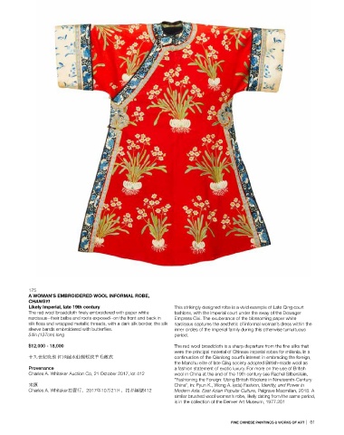 十九世紀晚期 紅地繡水仙蝴蝶紋羊毛敞衣 continuation of the Qianlong court’s interest in embracing the foreign,