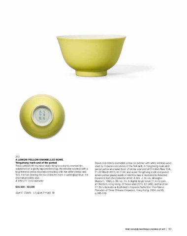 bright lemon-yellow enamel contrasting with the white interior and 21-22 March 2013, lot 1184; and a pair Yongzheng mark and period