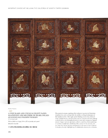 $80,000-120,000 or textiles, would have dominated the center of the screen, and of Ming Furniture, vol. 2, Beijing, 2017, pp. 428-34. This screen is dragons encircling the panels, while the panels on the present screen