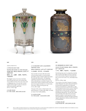 € 17,700-23,500 US$ 19,900-26,500 on view in the Toshiba Gallery. enamelling craftmanship. This tall vase vividly