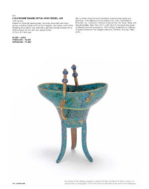 A CLOISONNÉ ENAMEL RITUAL WINE VESSEL, JUE See a similar cloisonné and champlevé enamel wine vessel, jue,