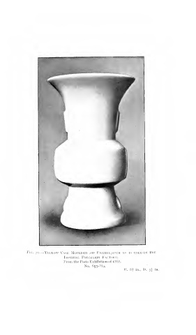 Fig. 76. — Yellow Vase Moulded ,of.' Enamel, such as is used in the Imperial Porcelain Factory. From the Paris Exhibition of 1867. No. 6ss-'6g. H. 8* in.. D. si in-
