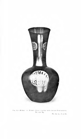 Fig. S5.— Bottle of Purple Glass cakved with Arabic Inscriptions. No. i2i-'83. H. iS| 111., L). gj in.