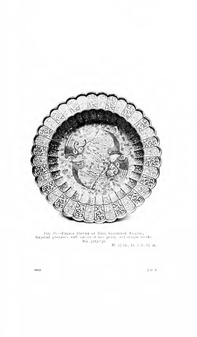 Fig. 88. — Palace Salver of Ming Cloisonne Enamel. Imperial phcenixes with sprays of tree peony and dragon scrolls. No. 4785-58. H. 5>- in., D. 2 ft. 61 in. 894]. •2 1. :i