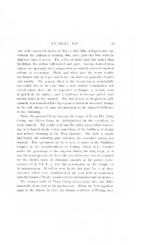 their enamels. The works of K'ang Hsi (1662-1722) while improv-
