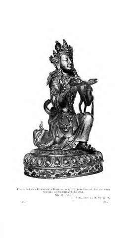 Ftg. 94. — Lama Figure of a Bodhisattva. Gilded Bkonze, Inlaid with Scrolls of Champlev£ Enamel. No. 275-'98. H. , S in., base jj in. by 4J in. 8941. 2G