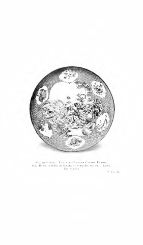 Fig. 99. — Dish. Y.i.vivr^f' — Painted Canton Enamel. Una Hsien, goddess of flowers, cros=;ing the sea on a dragon. No. 833-'S3. D. i/j^ in.