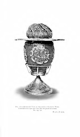 Fig. I lo. — Jewelled Vase of Silver-Gilt Filigree Work. Constructed to open and close like the petals of a lotus. No. 2gy-'y6. H. 9 in , D. 6{ in.