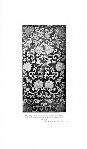 Fig. 114. — Sprays of Sacred Lotus and Bats. Silk Velvet in Queen's Park Museum, Manchester. No. 5 58c. I.. 9 ft. 3 in., W. 4 ft. 7