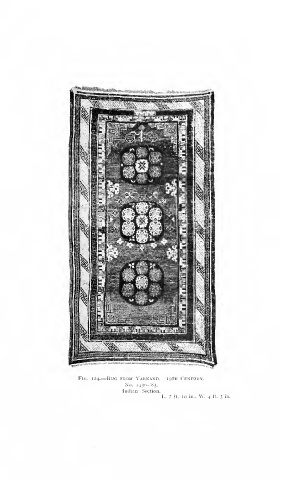 Fig. 124. — Rug from Yarkand. 19TH Century. No. i436-«3. Indian Section. L. 7 ft. 10 in., W. 4 ft. 3 in.