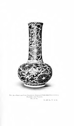 Fig. 30. — Porcelain Vase Painted in Brilliant Blue with Conventional Flowers and Foliage. No. 9i-'87. H. 16J in., D. 9j in.