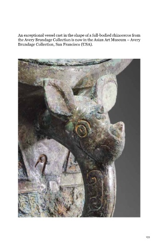 The Rhinoceros Motif 犀牛紋 An exceptional vessel cast in the shape of a full-bodied rhinoceros from