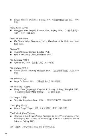 ■ Style in the Arts of China, Baltimore 1974. 《新收殷周青銅器銘文暨器影彙編》臺北 2006 年版.