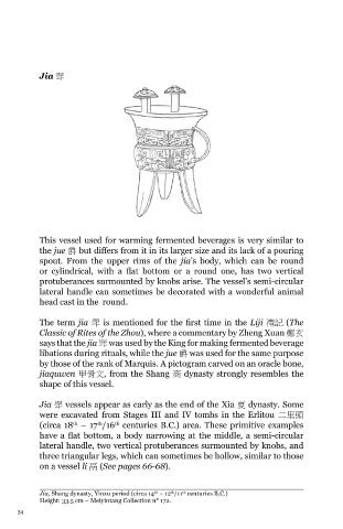 Jia 斝 vessels appear as early as the end of the Xia 夏 dynasty. Some