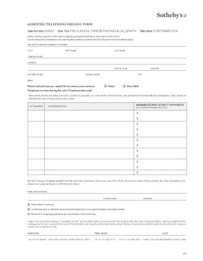 catalogue for the sale. I consent to the use of this information and any other information obtained by Sotheby’s in accordance with the Guide for Absentee and Telephone