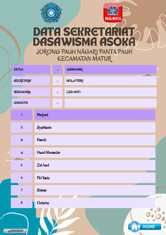 JORONG PAUH NAGARI PANTA PAUH A KECAMATAN MATUR KETUA : JUSMANIAR SEKRETARIS : NOL;A FEBRI BENDAHARA : LIZA WATI ANGGOTA : 1. Melyani 2. Syafrianto 3. Nanda 4. Husni Munandar 5. Zul Amri 6. Firi Yanis 7. Saimar 8. Ostarina